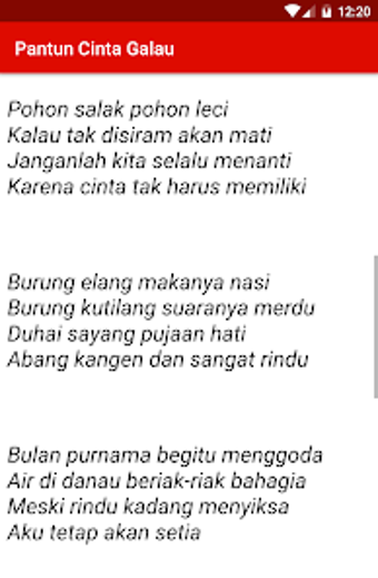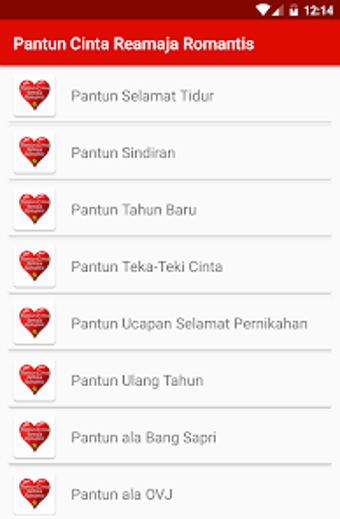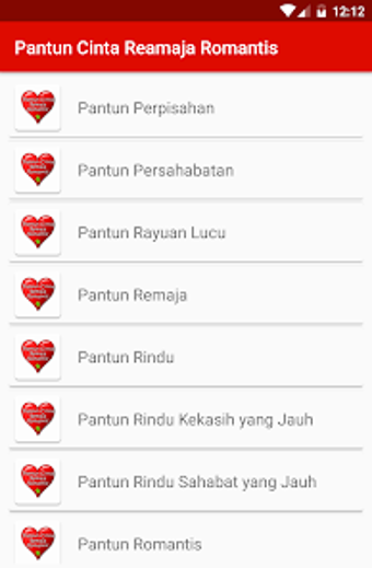 Pantun Cinta Remaja Romantis (Romantic Teen Love) هو تطبيق للمراهقين والشباب. وهي أيضًا مجموعة من القصائد والقصص القصيرة والأغاني. إنه مصمم للأشخاص في الفئة العمرية من 14 إلى 18 عامًا.